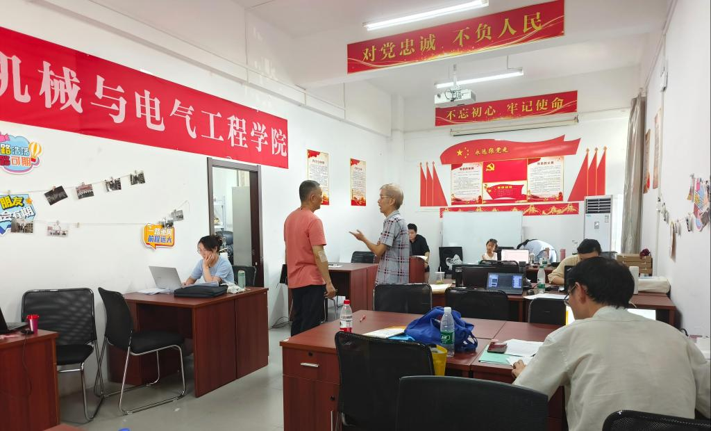 (图为张涛校助检查指导机械与电气工程学院阅卷工作)